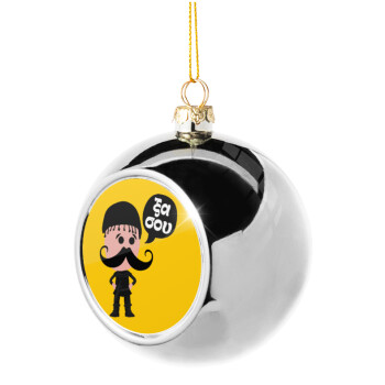 Κρητικός "Ξα σου", Silver 8cm Christmas tree ball ornament