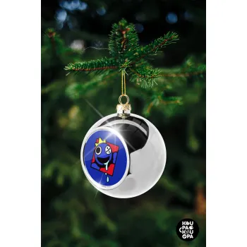Blue, Rainbow friends, Silver 8cm Christmas tree ball ornament