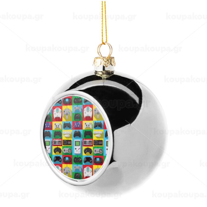 Gaming Controllers, Silver 8cm Christmas tree ball ornament