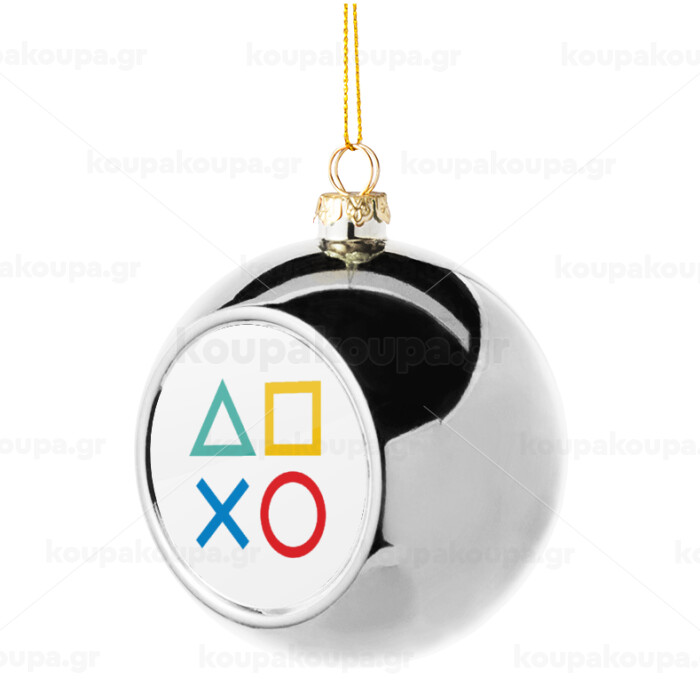 Gaming Symbols, Silver 8cm Christmas tree ball ornament