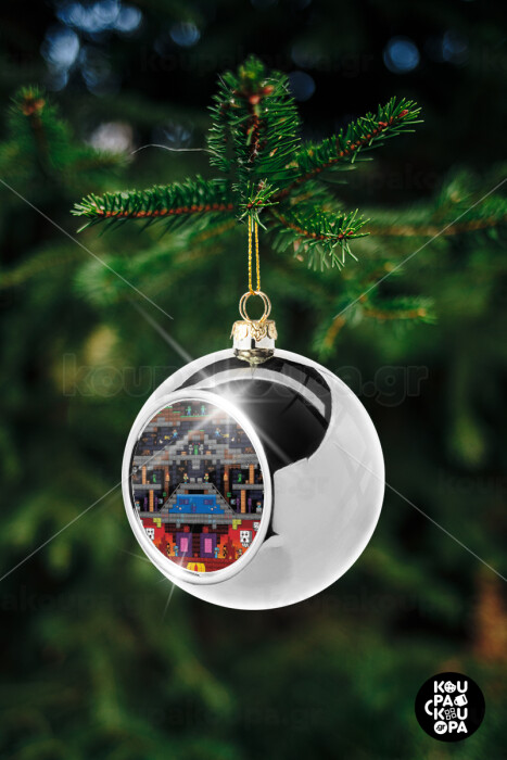 Minecraft 2D map, Silver 8cm Christmas tree ball ornament