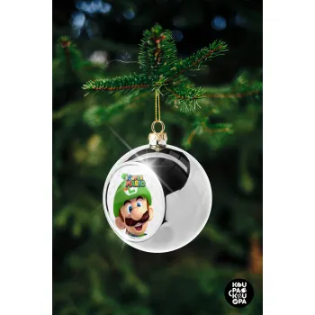 Super mario Luigi, Silver 8cm Christmas tree ball ornament
