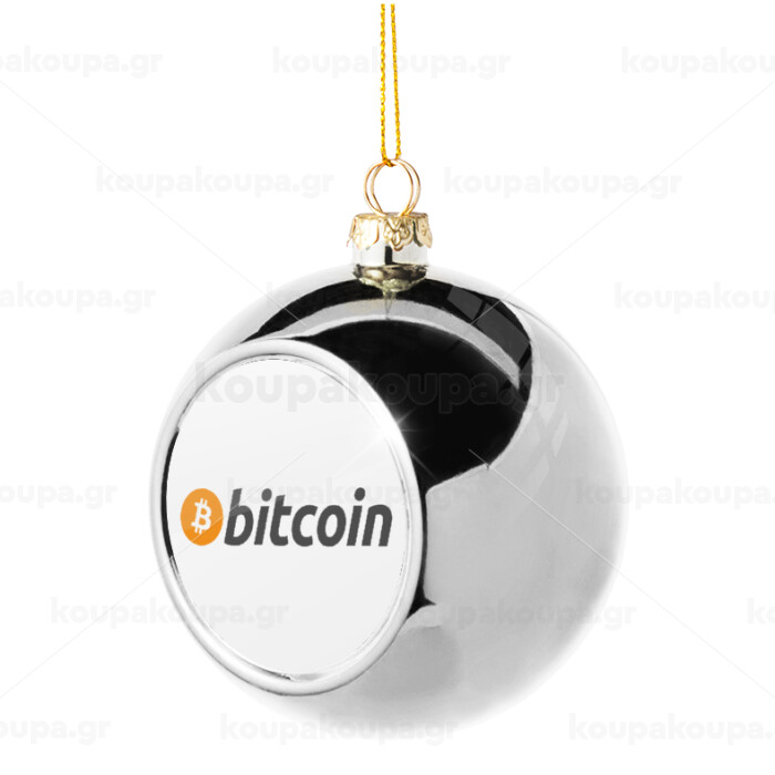 Bitcoin Crypto, Silver 8cm Christmas tree ball ornament