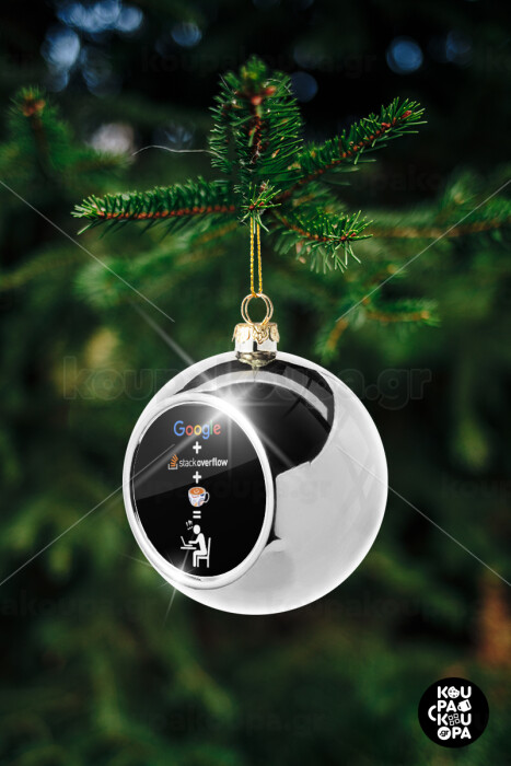 Google + Stack overflow + Coffee, Silver 8cm Christmas tree ball ornament