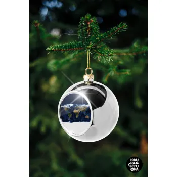 Earth map, Silver 8cm Christmas tree ball ornament