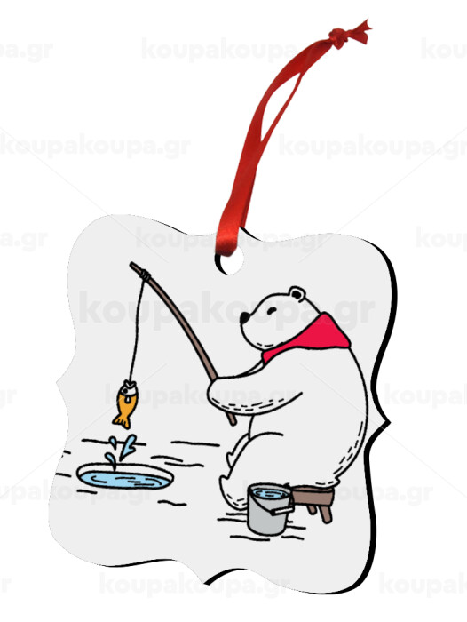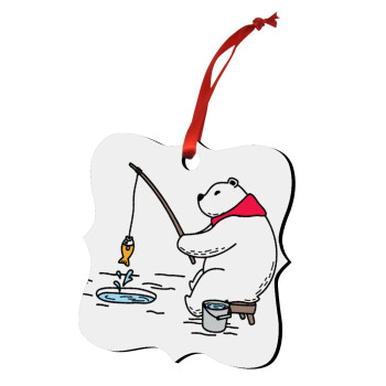 Bear fishing, Christmas ornament polygon wooden 7.5cm