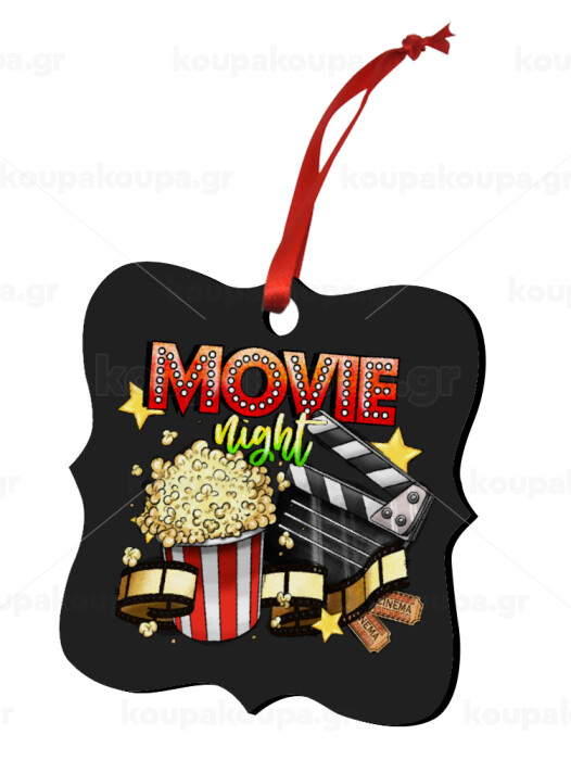 Movie night, Christmas ornament polygon wooden 7.5cm