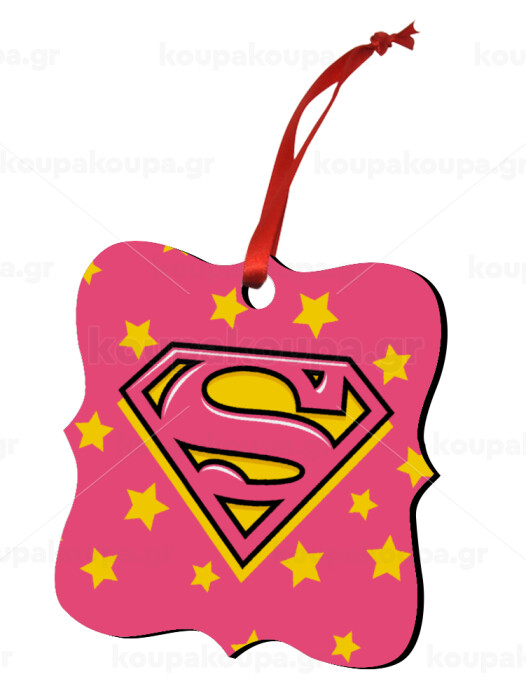 Superman Pink, Christmas ornament polygon wooden 7.5cm