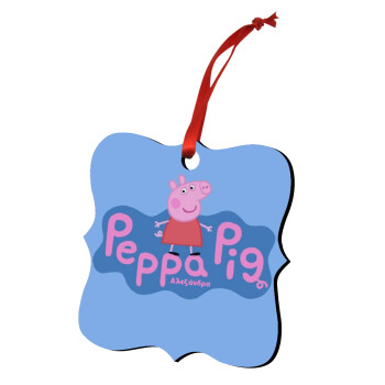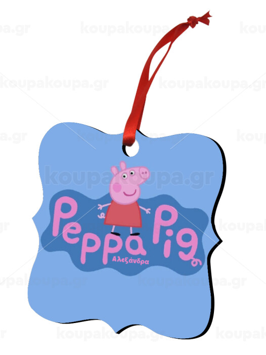 Πέππα το γουρουνάκι μπλε με όνομα, Christmas ornament polygon wooden 7.5cm