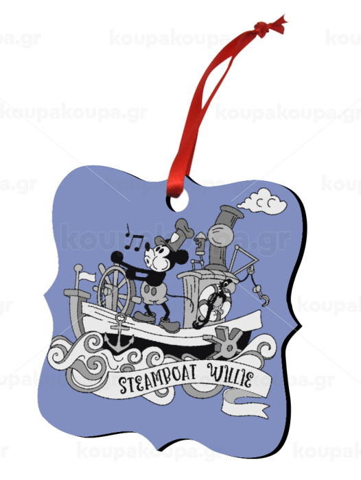 Mickey steamboat, Christmas ornament polygon wooden 7.5cm