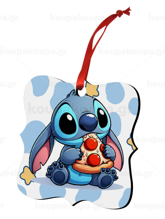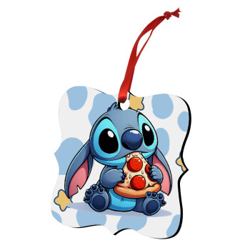 Stitch Pizza, Christmas ornament polygon wooden 7.5cm