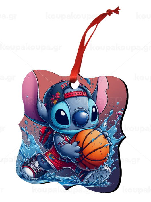 Stitch Basketball, Christmas ornament polygon wooden 7.5cm