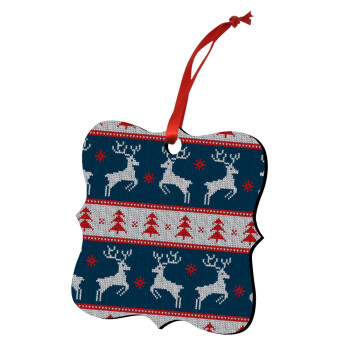 Deer knitted blue, Christmas ornament polygon wooden 7.5cm