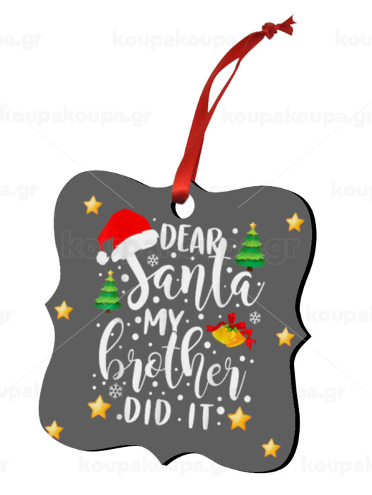 Dear santa my Brother did it, Christmas ornament polygon wooden 7.5cm