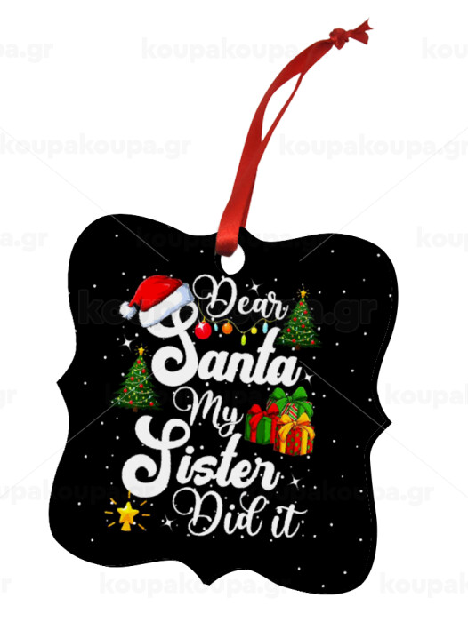 Dear santa my Sister Did it, Christmas ornament polygon wooden 7.5cm