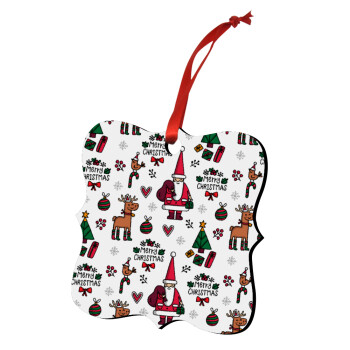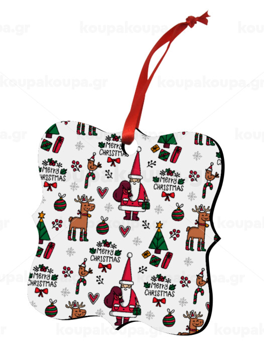 Santas, Deers & Trees, Christmas ornament polygon wooden 7.5cm
