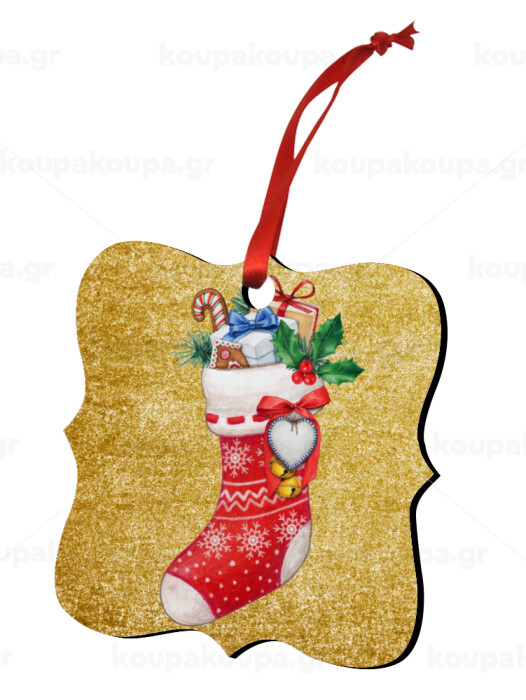 Xmas boot, Μπρελόκ Ξύλινο τετράγωνο MDF