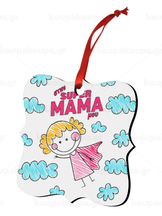 Στην SUPER μαμά μου, comic, Christmas ornament polygon wooden 7.5cm