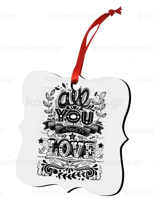All you need is love, Christmas ornament polygon wooden 7.5cm