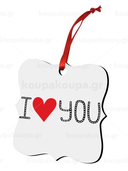 I Love You small dots, Μπρελόκ Ξύλινο τετράγωνο MDF