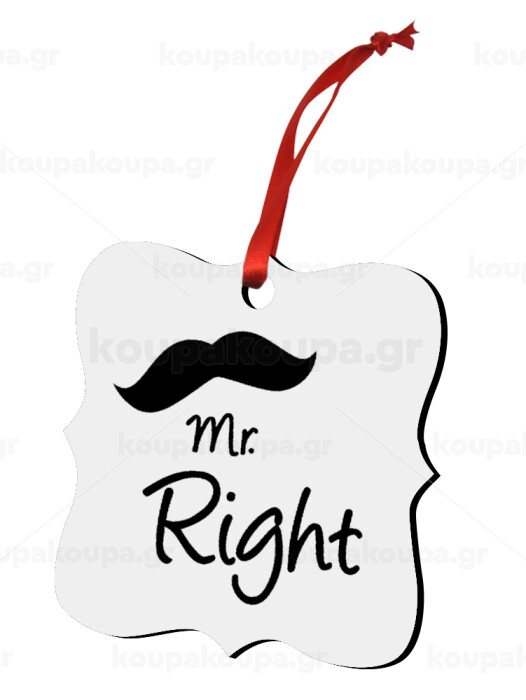 Mr right Mustache, Μπρελόκ Ξύλινο τετράγωνο MDF