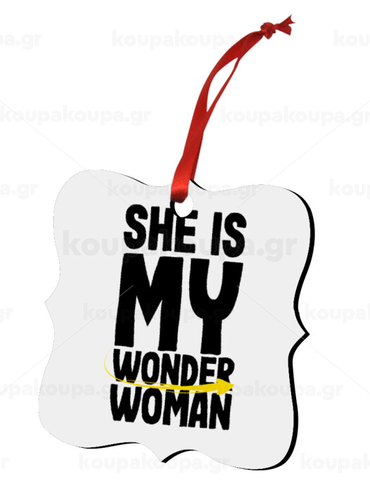 She is my wonder woman, Christmas ornament polygon wooden 7.5cm