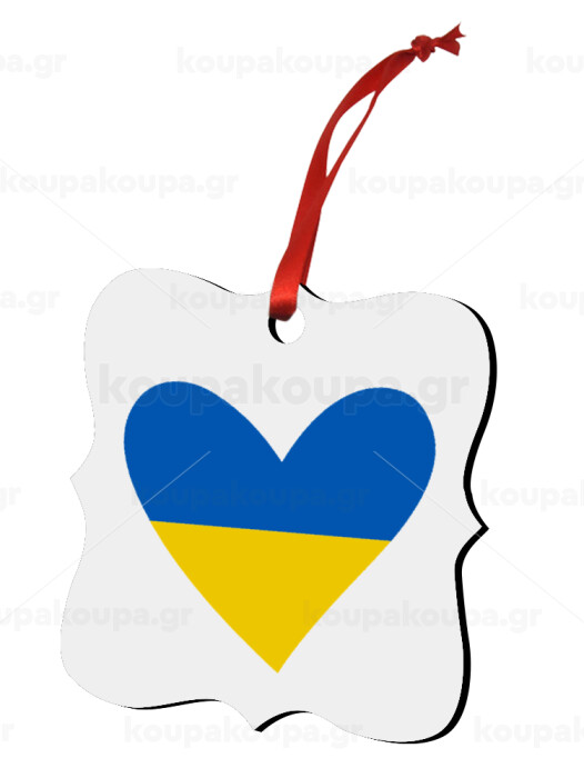 UKRAINE heart, Μπρελόκ Ξύλινο τετράγωνο MDF
