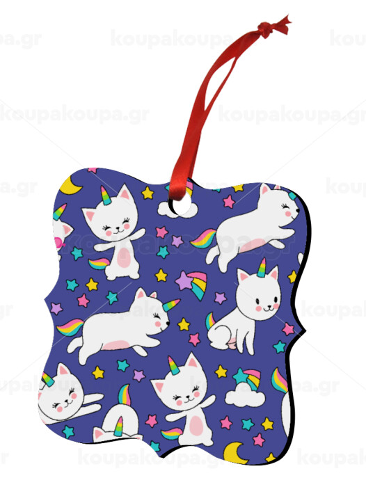 Cats unicorns, Christmas ornament polygon wooden 7.5cm