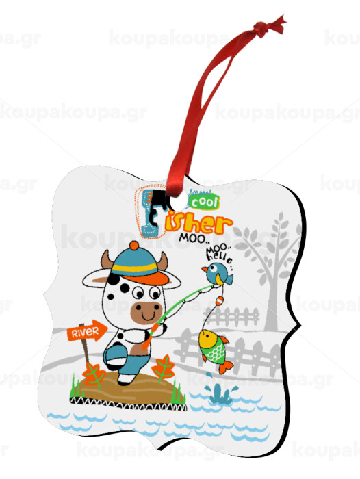 Kids Fisherman, Christmas ornament polygon wooden 7.5cm