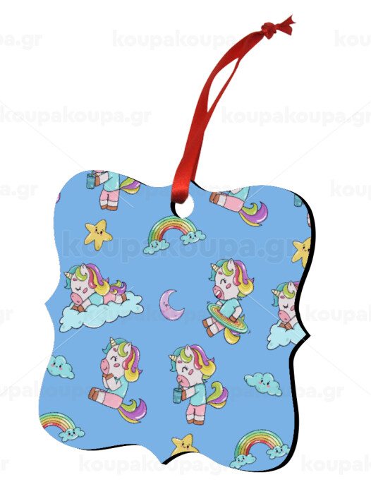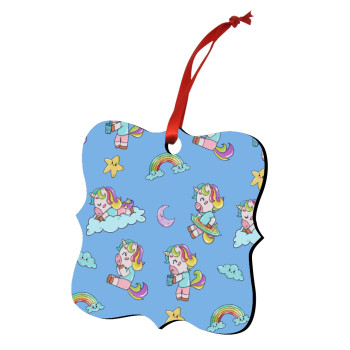 Unicorn pattern, Christmas ornament polygon wooden 7.5cm