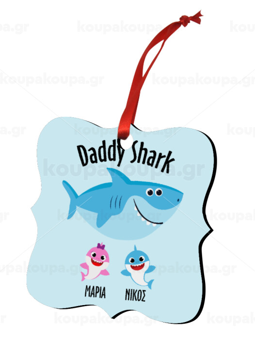 Daddy Shark (με ονόματα παιδικά), Christmas ornament polygon wooden 7.5cm