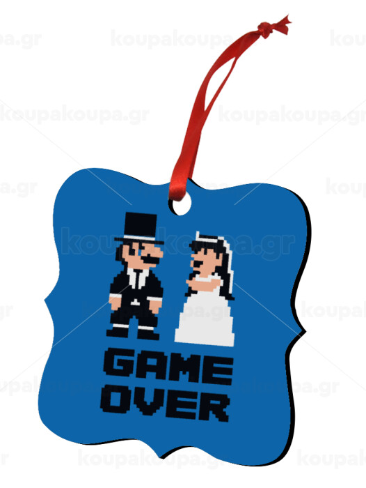 8bit Game Over Couple Wedding, Christmas ornament polygon wooden 7.5cm