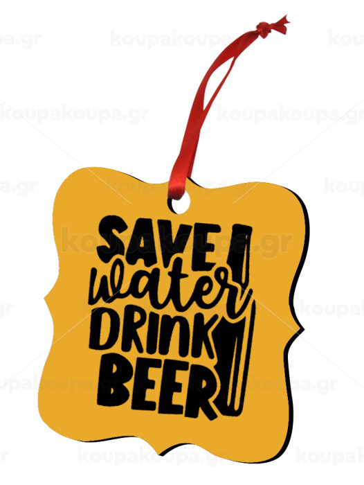 Save Water, Drink BEER, Christmas ornament polygon wooden 7.5cm