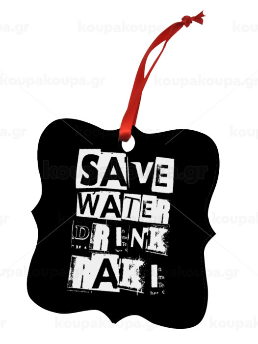 Save Water, Drink RAKI, Christmas ornament polygon wooden 7.5cm