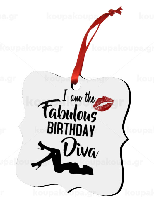 I am the fabulous Birthday Diva, Christmas ornament polygon wooden 7.5cm