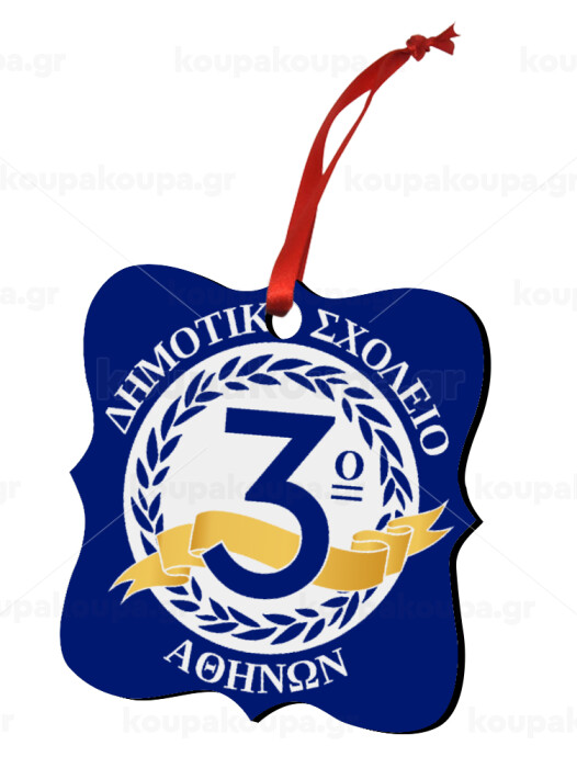 Έμβλημα Σχολικό με δάφνες, Christmas ornament polygon wooden 7.5cm