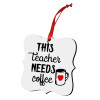 Τhis teacher needs coffee, Christmas ornament polygon wooden 7.5cm