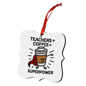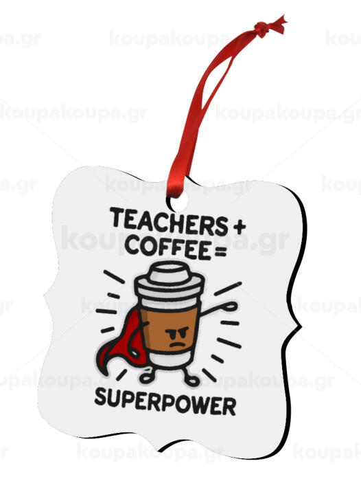 Teacher Coffee Super Power, Christmas ornament polygon wooden 7.5cm