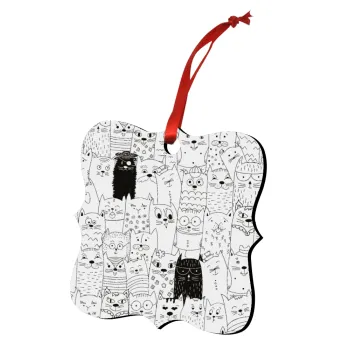 Γάτες γραμμικό σχέδιο, Christmas ornament polygon wooden 7.5cm