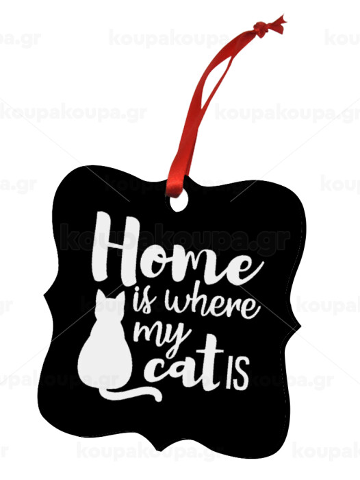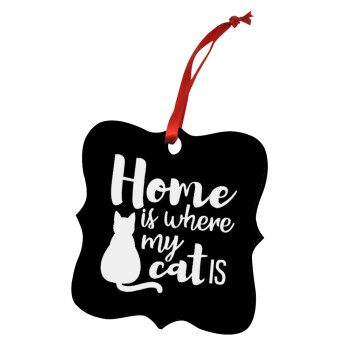 Home is where my cat is!, Christmas ornament polygon wooden 7.5cm