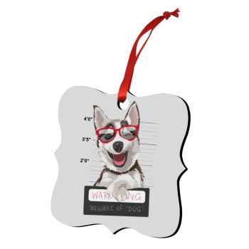 Warning, beware of Dog, Christmas ornament polygon wooden 7.5cm