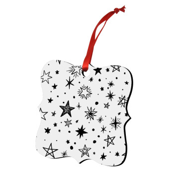 Doodle Stars, Christmas ornament polygon wooden 7.5cm