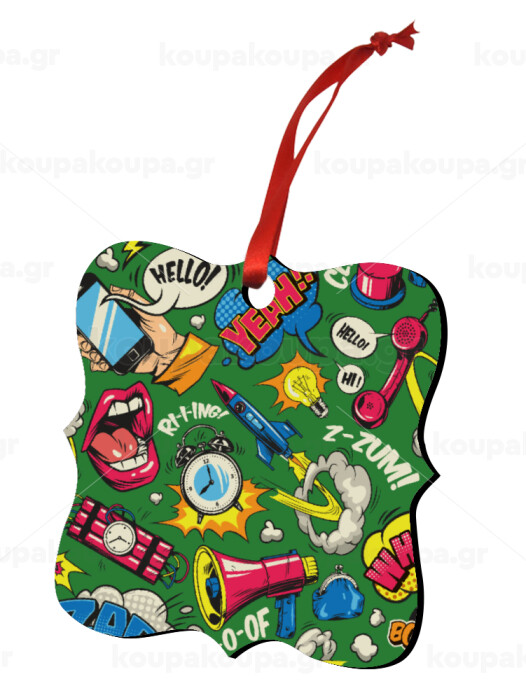 Pop art colorful seamless, Christmas ornament polygon wooden 7.5cm