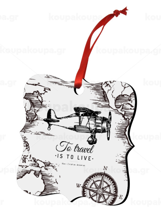 To travel is to live, Christmas ornament polygon wooden 7.5cm