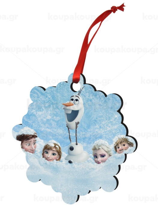 Ψυχρά κι ανάποδα Όλαφ και οι φίλοι του, Christmas ornament snowflake wooden 7.5cm