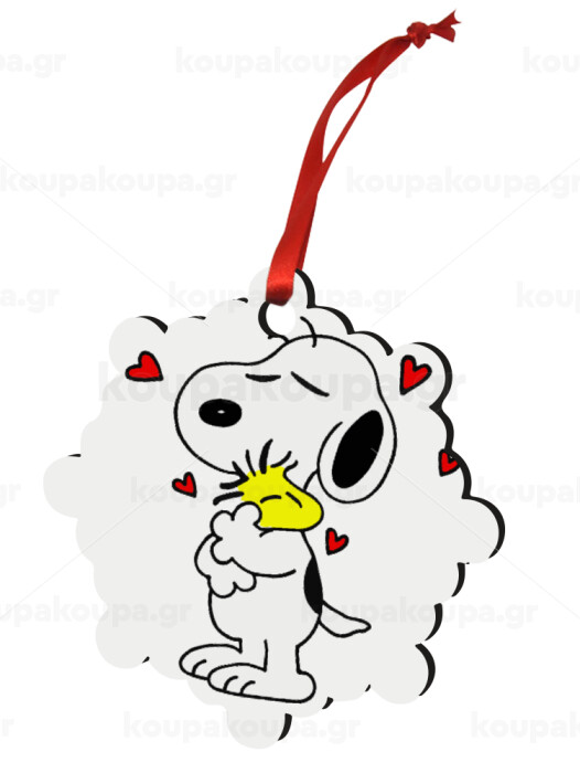 Snoopy Love, Christmas ornament snowflake wooden 7.5cm