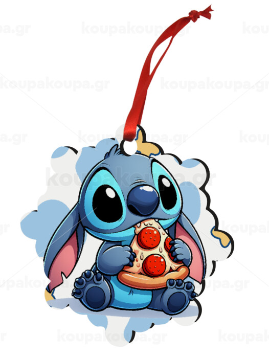 Stitch Pizza, Christmas ornament snowflake wooden 7.5cm
