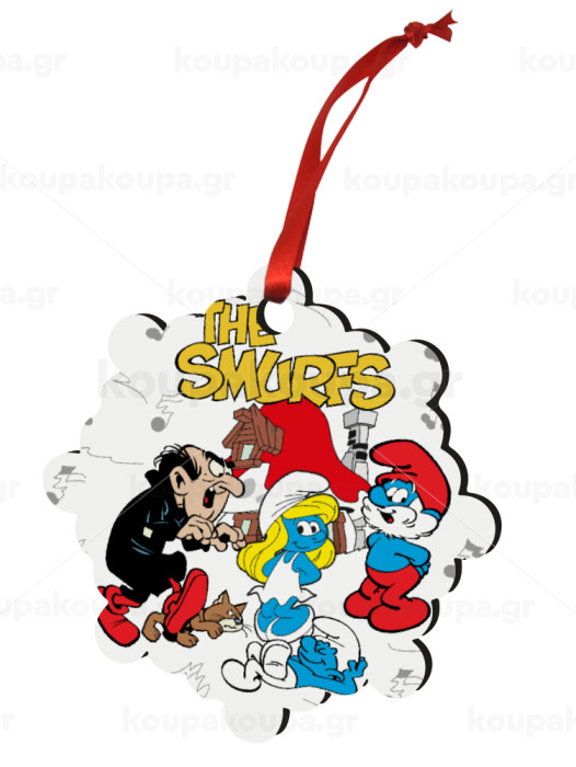 The smurfs, Christmas ornament snowflake wooden 7.5cm