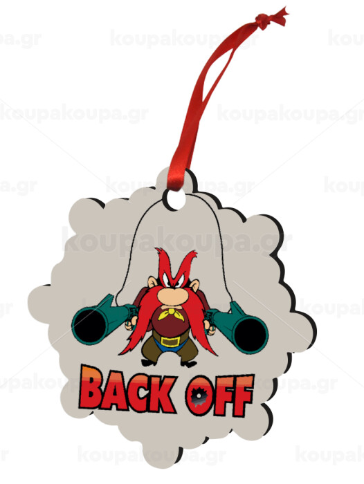 Yosemite Sam Back OFF, Μπρελόκ Ξύλινο τετράγωνο MDF