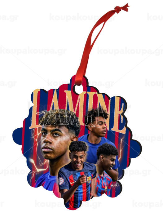 lamine yamal FCB, Christmas ornament snowflake wooden 7.5cm